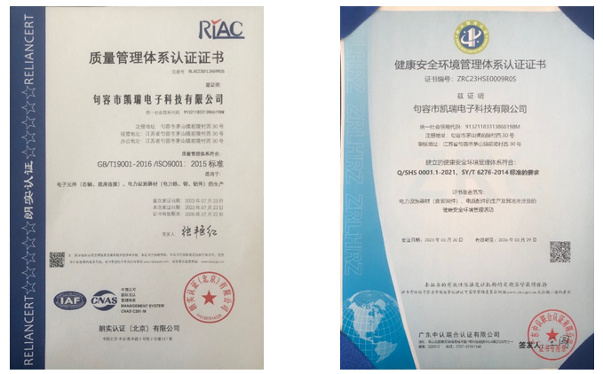 ISO9001質(zhì)量管理體系認證證書+健康安全環(huán)境管理體系認證證書